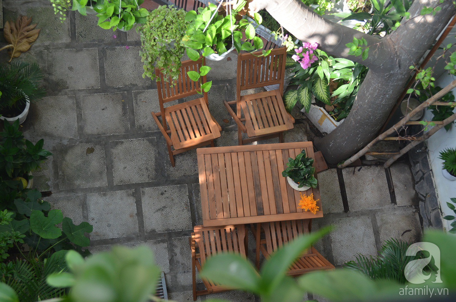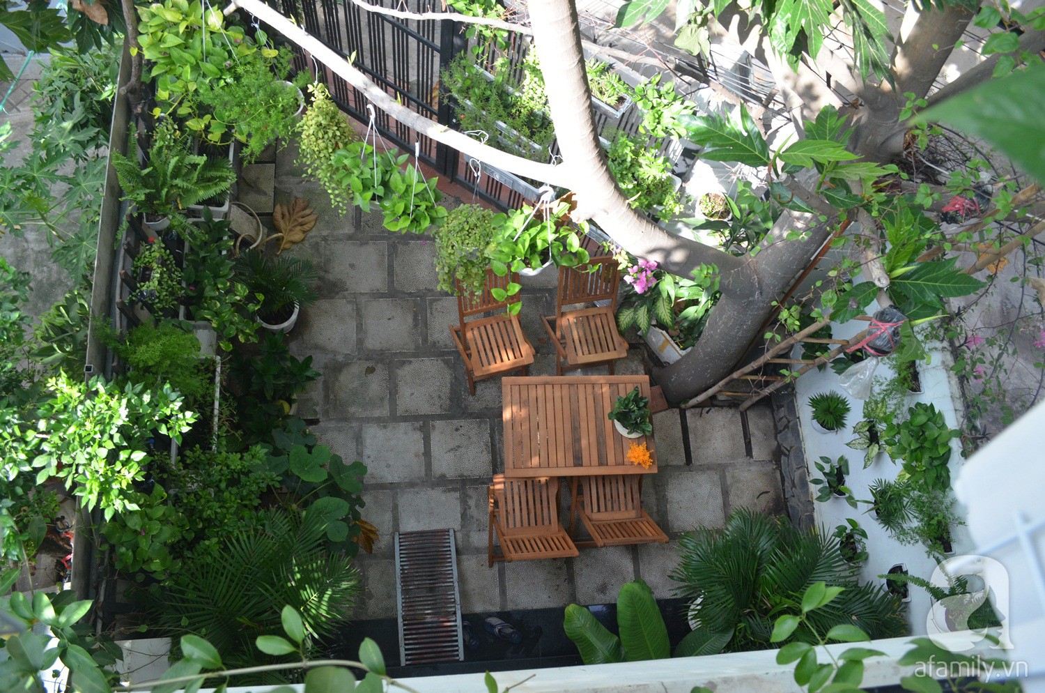 Và cuối cùng thì công sức của chị đã được đền đáp, góc sân xanh mướt không kém gì một quán cafe nào được dựng nên ai đến cũng xuýt xoa khen ngợi. Giờ đây, góc sân vườn này là nơi để gia đình, bạn bè của chị tụ họp, ăn uống, nói chuyện.