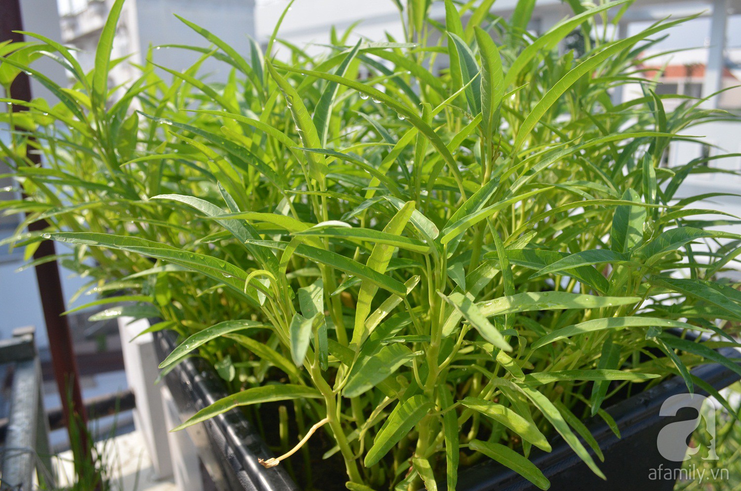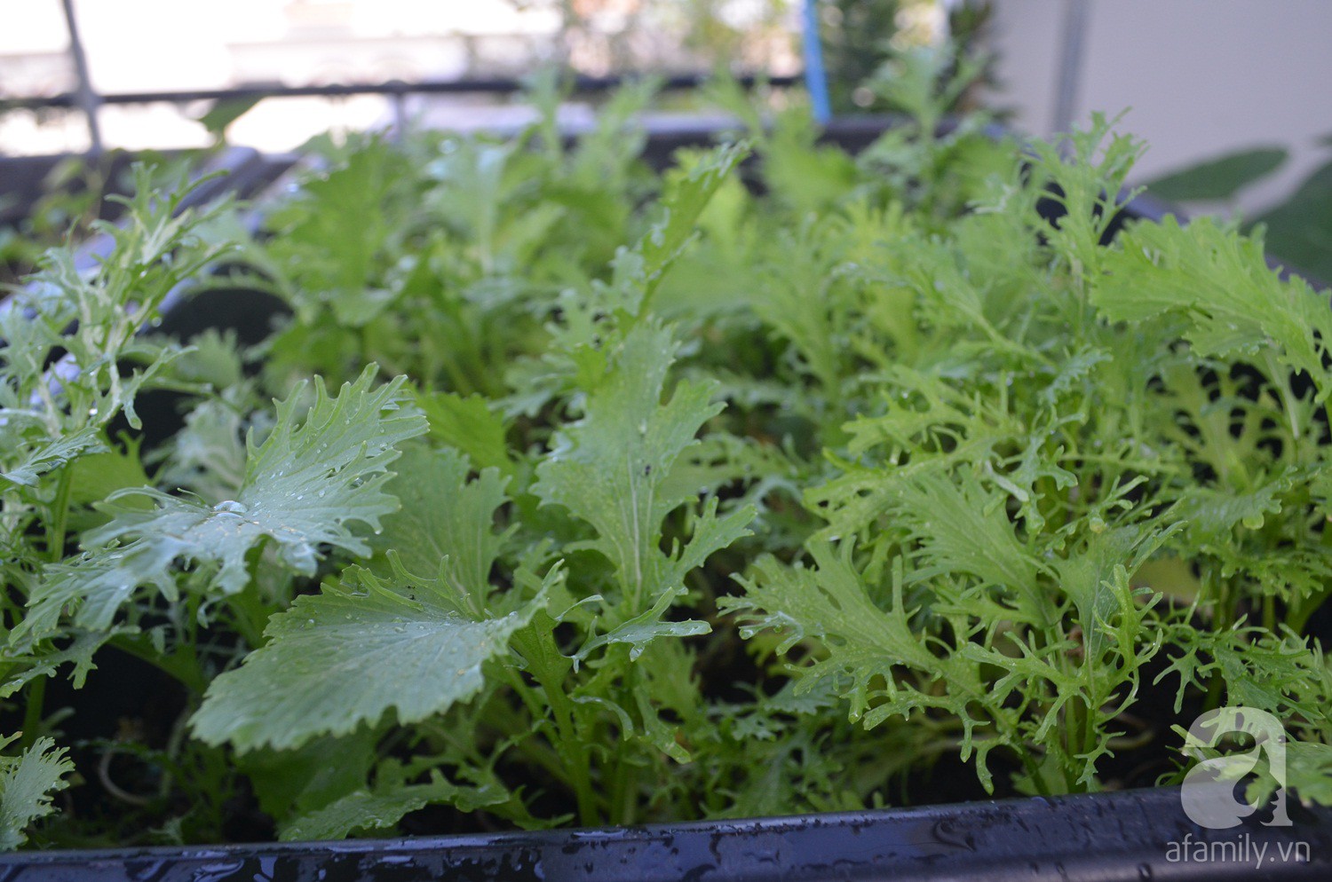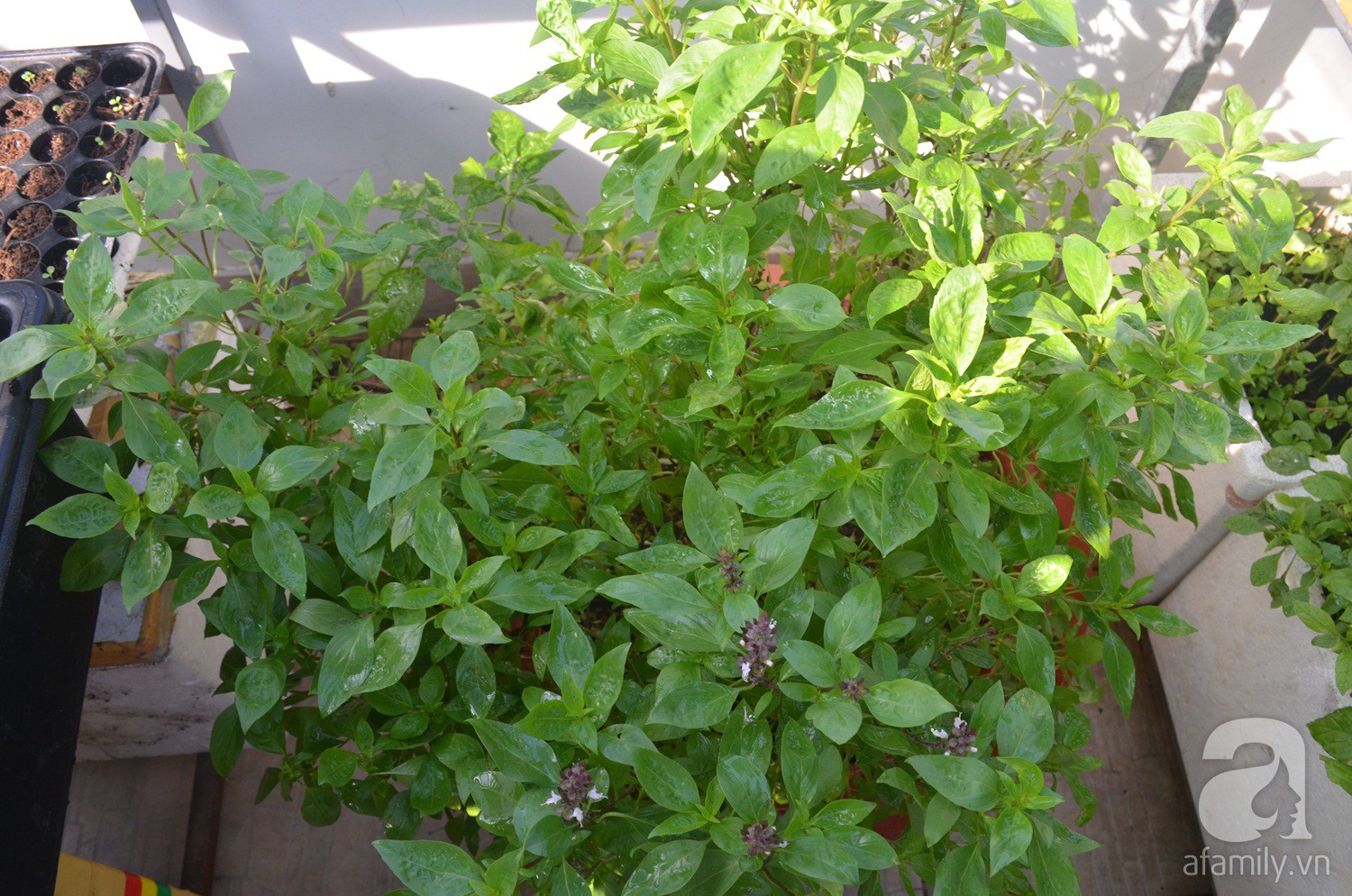 Nghĩ là làm, chị Thương tìm xin những thùng xốp, mua đất về trồng. Tuy nhiên, đặt thùng xốp dưới mặt sàn không thể vệ sinh sạch sẽ, ứ đọng nước gây ẩm mốc nên chị đã chuyển qua khay trồng.