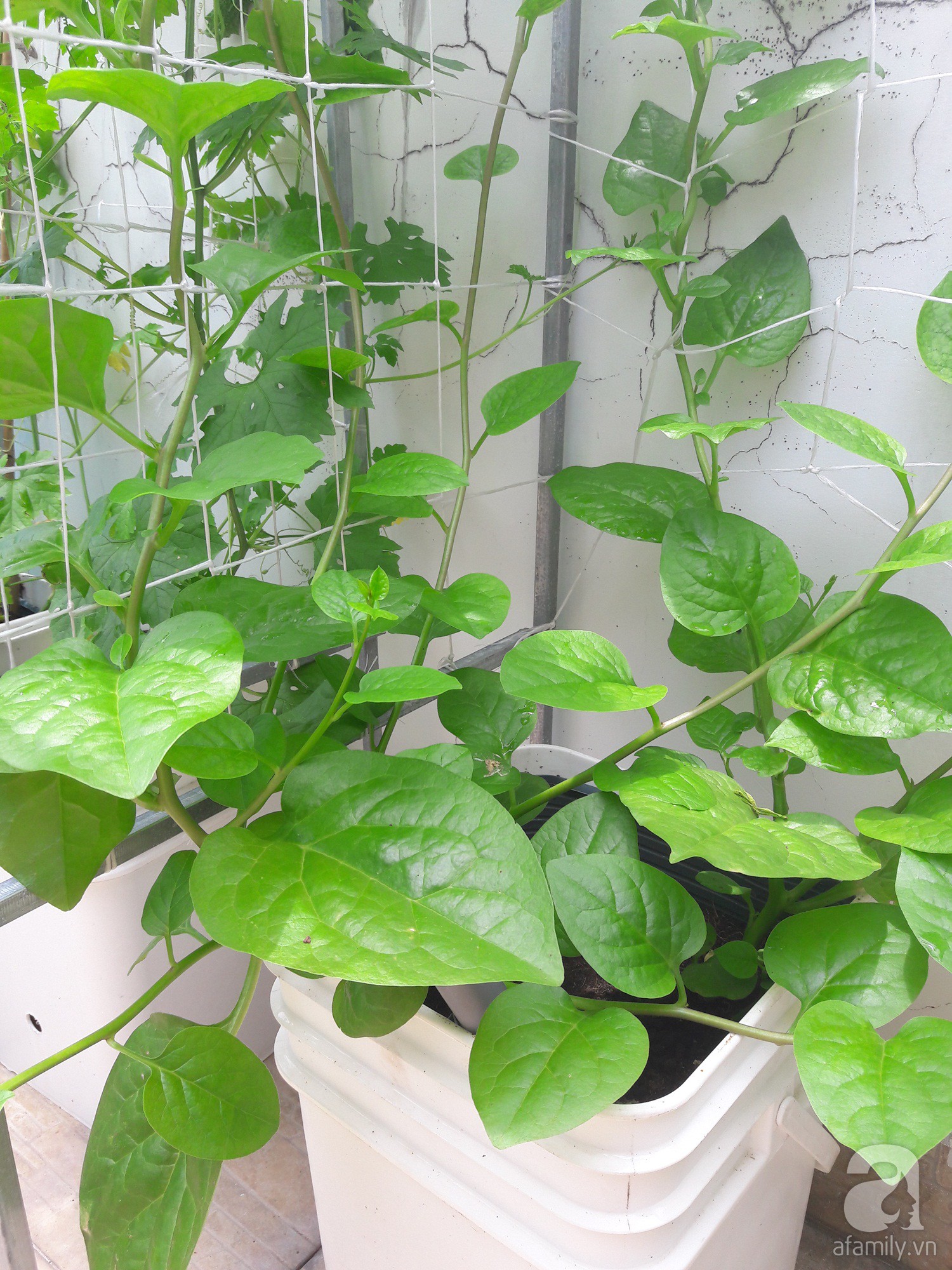 Thành công với góc sân nhỏ dưới tầng 1, chị Thương lại càng thích thú và đam mê với việc làm vườn. Thế là chị nảy sinh ý định làm một vườn rau nhỏ trên khoảng sân thượng rộng 40m2 vừa là để gia đình có rau sạch ăn, vừa là để thư giãn, thỏa niềm đam mê với cây cối.