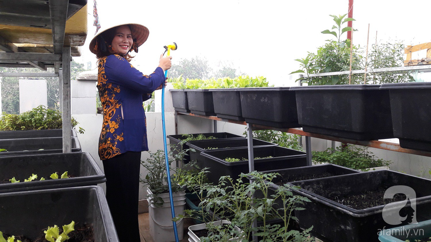 Và cuối cùng, bằng sự đam mê với nghiệp làm vườn, chị Thương đã tạo nên cho mình khu vườn với đủ loại rau xanh quanh năm, biến sân thượng của mình trở thành một vườn rau xanh mướt quanh năm.