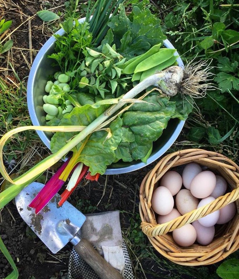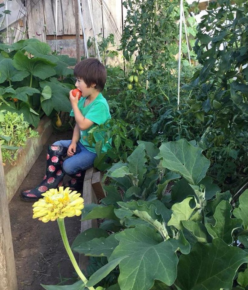 Khu vườn được trồng hoàn toàn theo phương pháp hữu cơ, không phun thuốc trừ sâu, không phân bón hóa học. Những loại củ quả thu hoạch được đều có thể rửa sạch và thưởng thức ngay trong vườn, rất tốt cho sức khỏe.