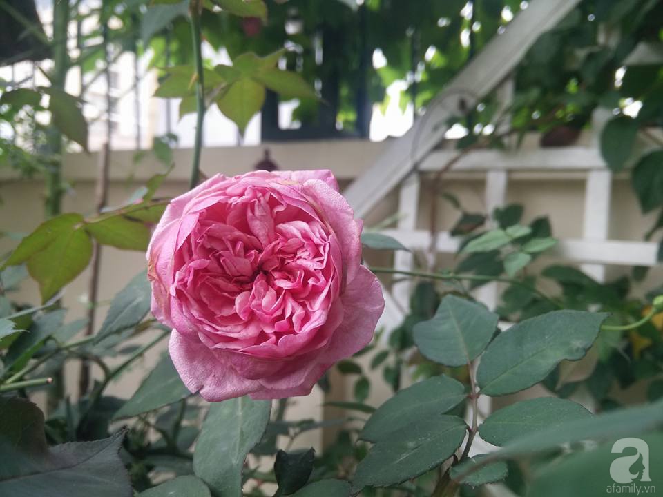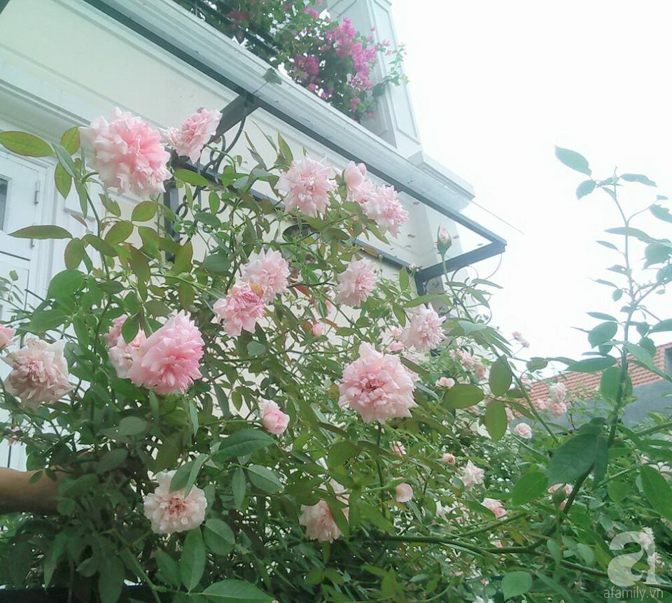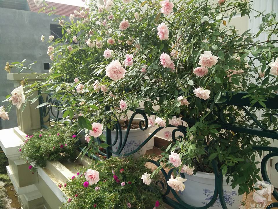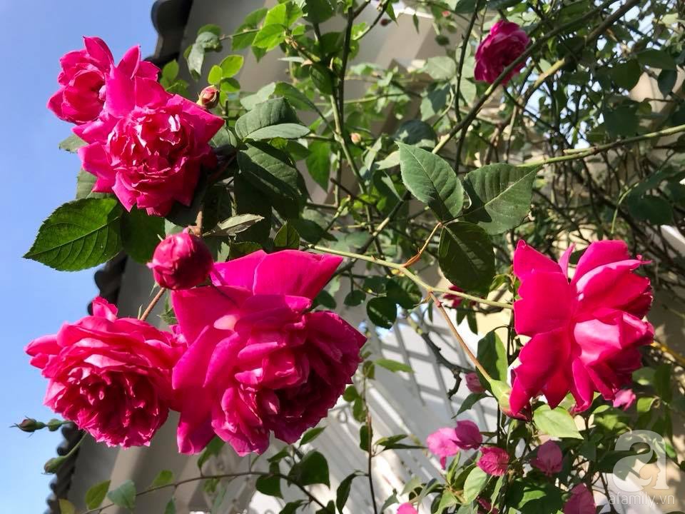 Nhìn những góc nhỏ rực rỡ, dù trời mát hay mưa giông, những gốc hồng vẫn rực rỡ tràn đầy sức sống giúp ngôi nhà nhỏ của chị thêm ấm áp và xinh xắn hơn.