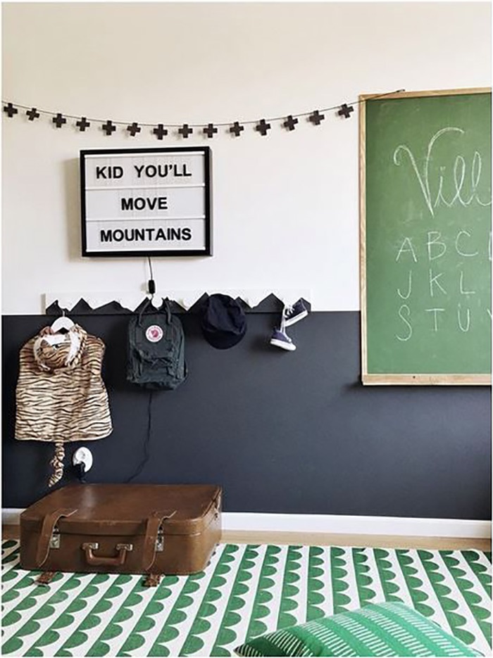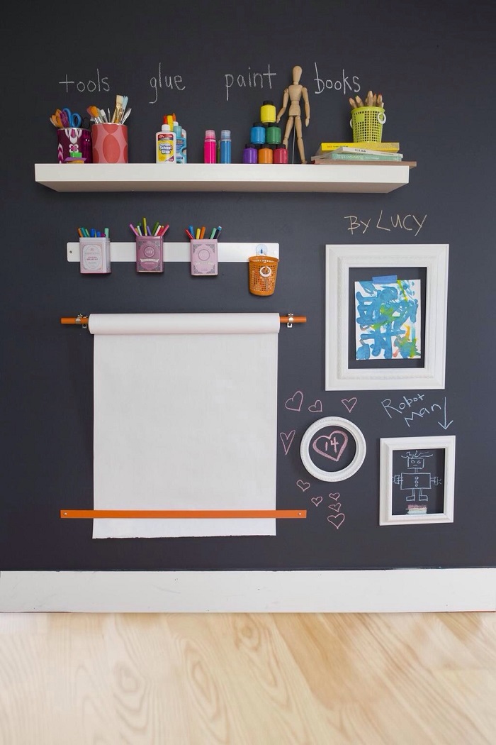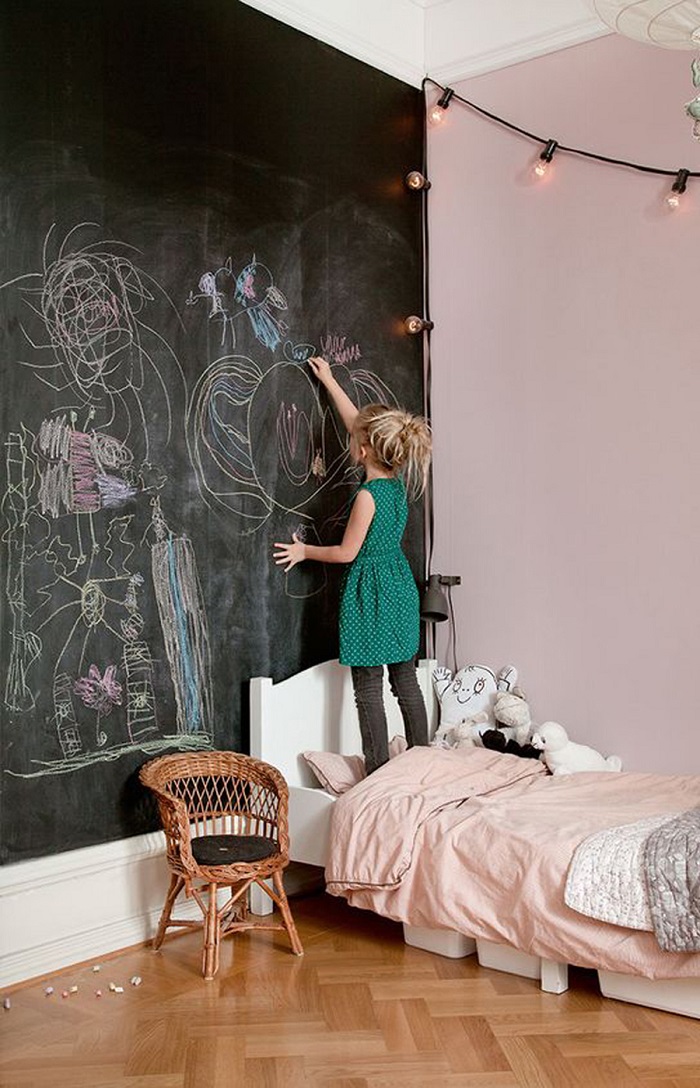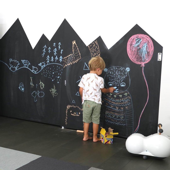 Hoặc phía dưới là bảng đen cho con tha hồ nghịch phía trên cao vẫn là tường trắng tinh mà không hề sợ bẩn.