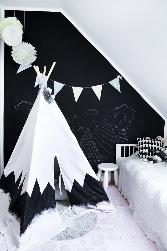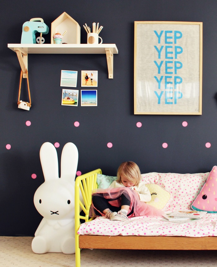 Nếu bạn nghĩ rằng trang trí tường bé bằng màu đen là quá ảm đạm cho không gian của một đứa trẻ thì những mẫu thiết kế và cách xử lý cực hay dưới đây sẽ đưa ra cho bạn rất nhiều giải pháp.